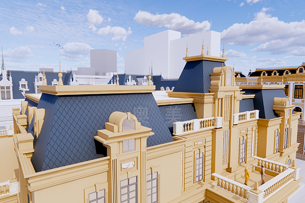 此為中東歐商務(wù)中心項目,此屋面系統(tǒng)采用的是新型建筑材料金屬復(fù)合瓦鋪設(shè)...