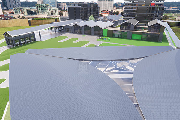此為惱包奧萊水世界項目,此屋面系統(tǒng)采用的是新型建筑材料金屬復(fù)合瓦鋪設(shè)...